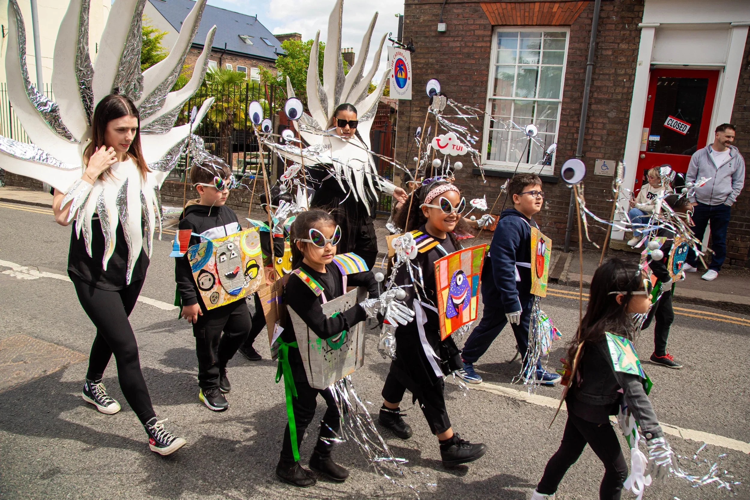 In 2023 with the support of Luton’s Greener Future Fund, we embarked on our journey in reducing Luton Carnival’s CO2 emissions and upskilling local artists and students in suitable practices.