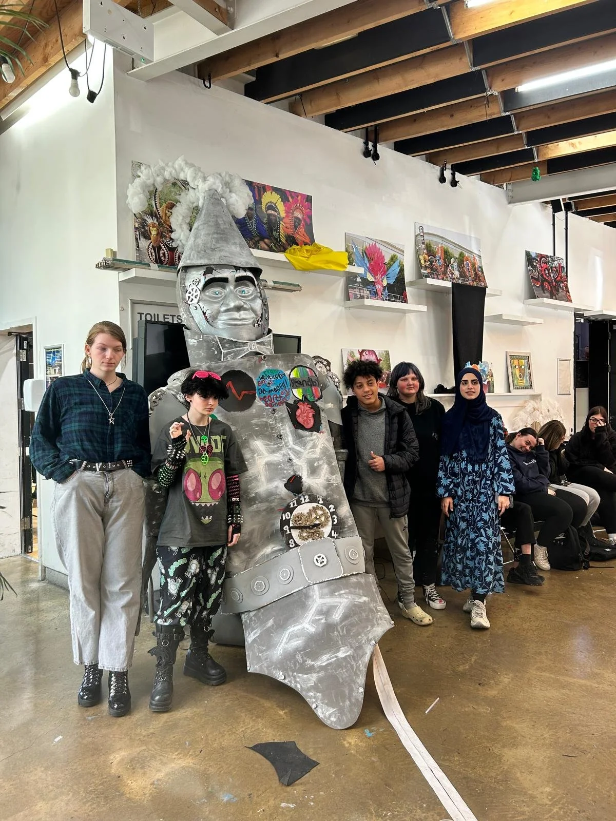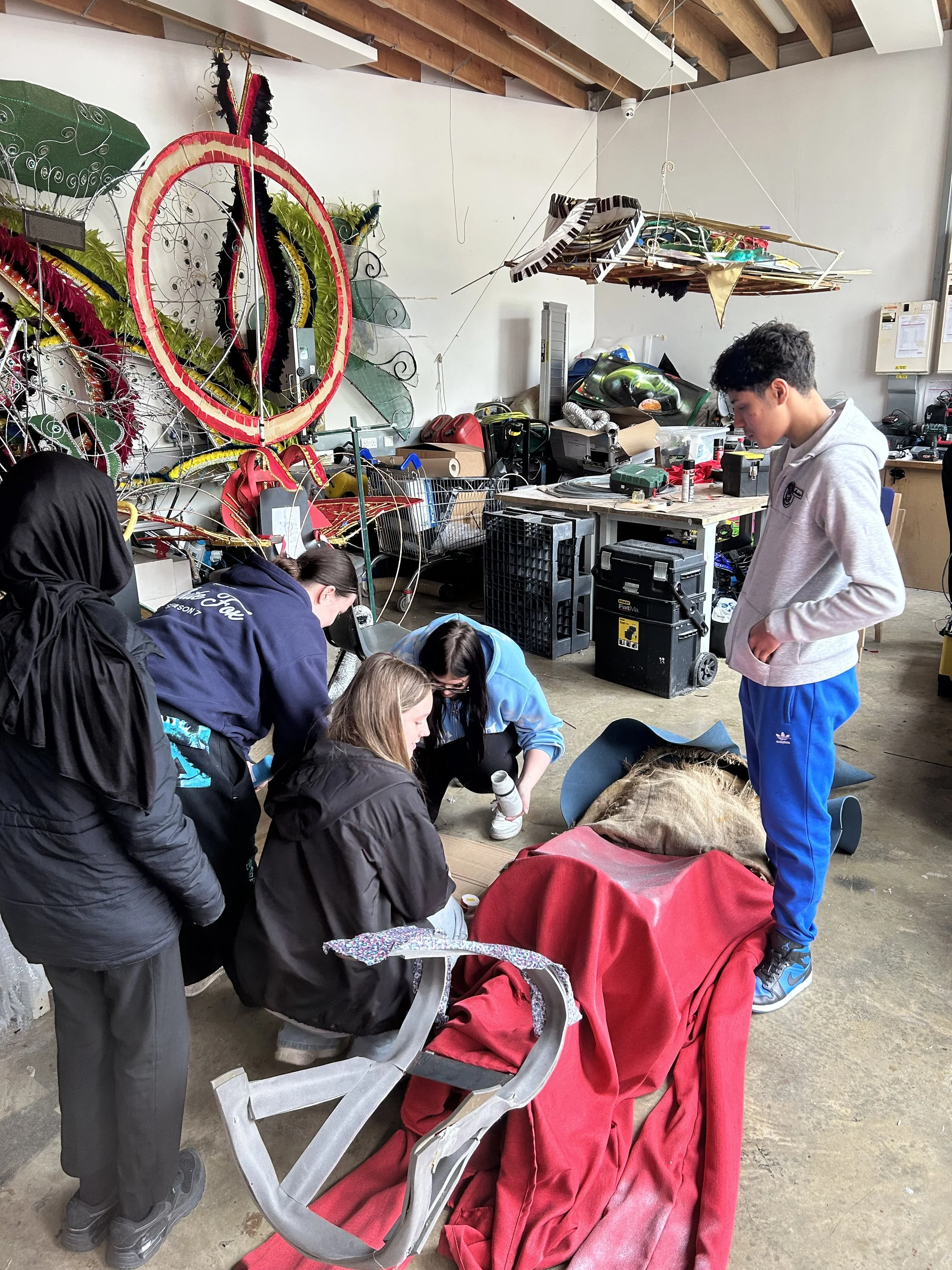 They worked closely with artists and float builders, learning how to construct sustainably, using reclaimed materials, low-tech methods, and creative design solutions. Their efforts laid the groundwork for a greener, more accessible carnival-making process and their contributions will continue to support future school groups.