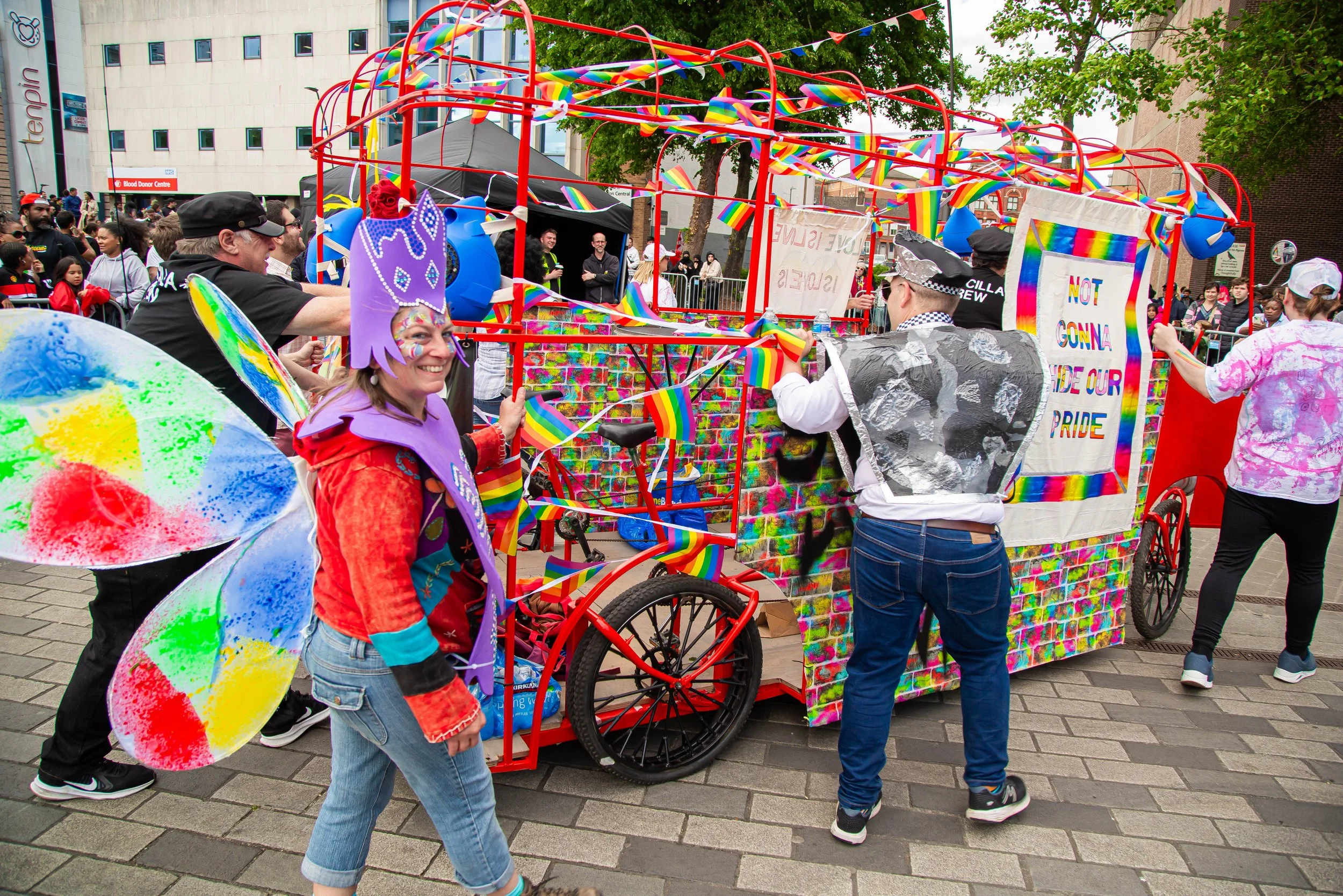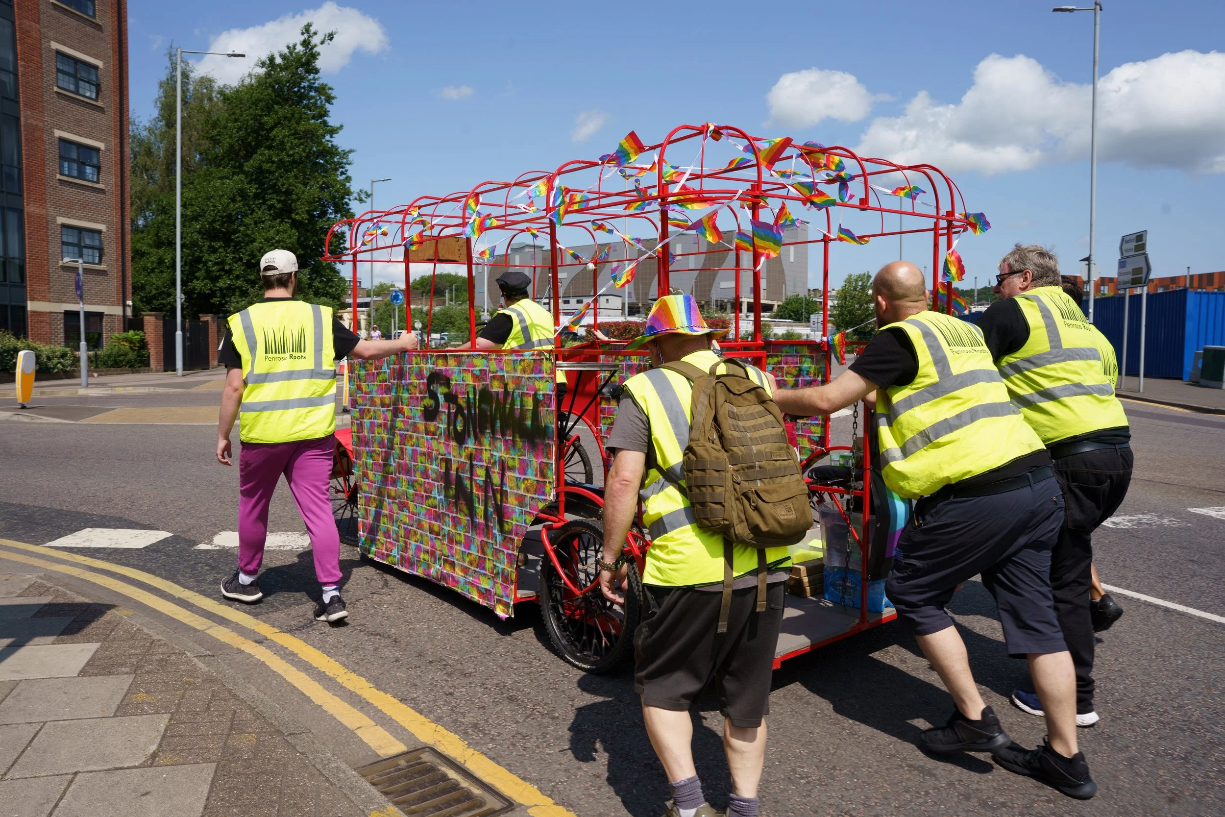 Members of the Luton Pride community led the decorative finish, adding colour, character, and symbolism through hand-painted detailing and creative reuse of materials.